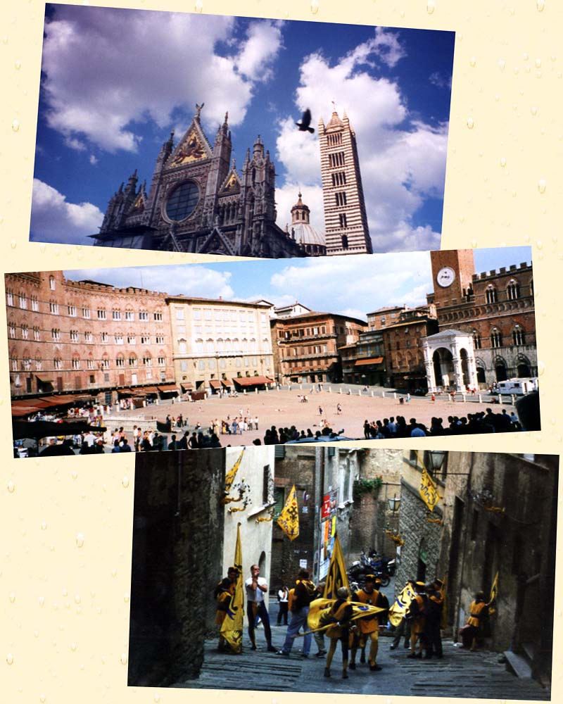 Siena is truly beautiful with the Il Campo plaza waiting for the next Palio so that it can be dressed up in Middle Age splendor. We were lucky enough to see the costumes of one of the contrada (districts of Siena that compete in the Palio) dressed and beating their drums.